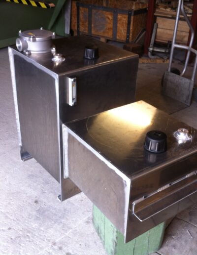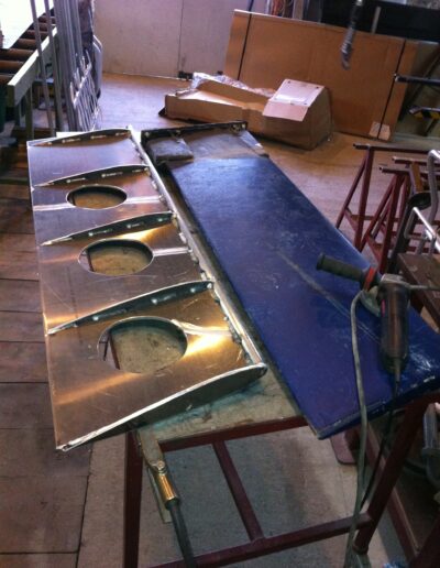 Conception ou réparation de matériels tels que : cabines, réservoirs à carburant et réservoirs à huile hydraulique toutes capacités, chaises ou supports moteurs, garde-corps, protections d’hélice, patins d’échouage…
