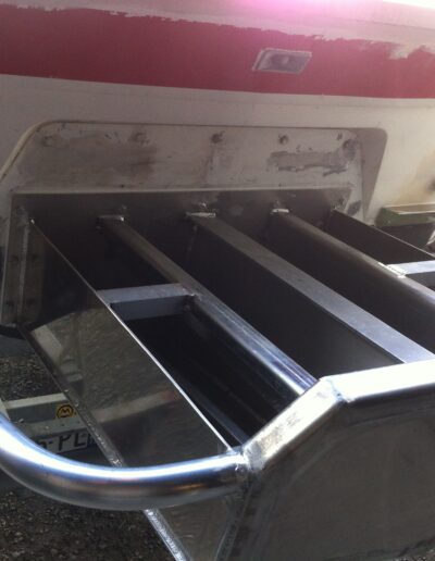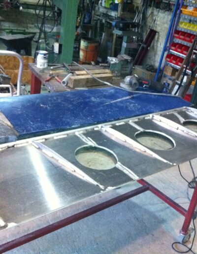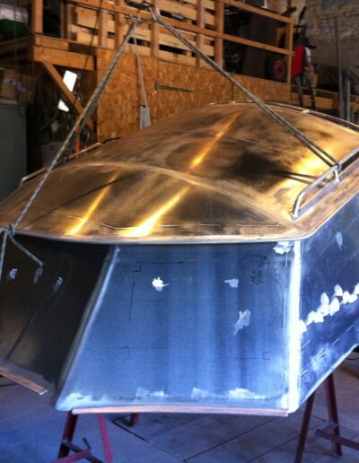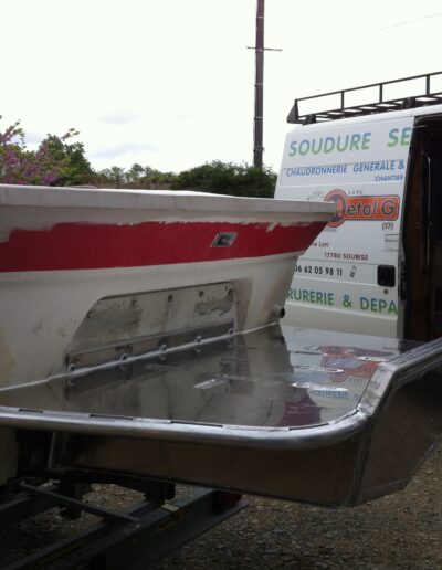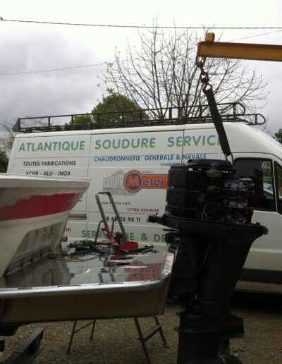 Safrans, mèches de safran, dérives, réservoirs en aluminium toutes capacités, supports moteurs « brackets », consoles de pilotage, casquettes aluminium, jupes, pose de tunnel de propulseur d’étrave…