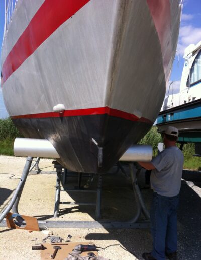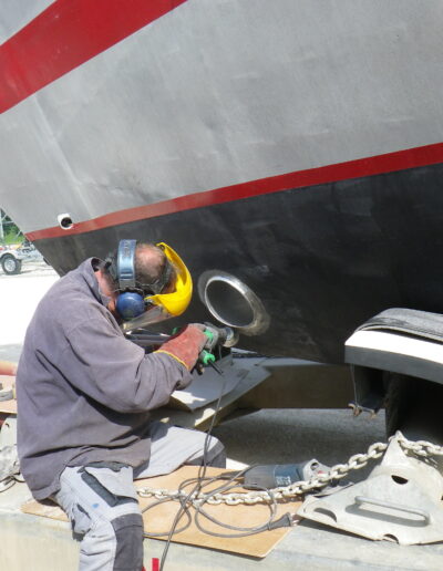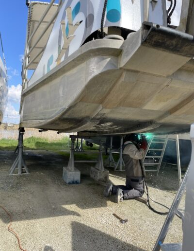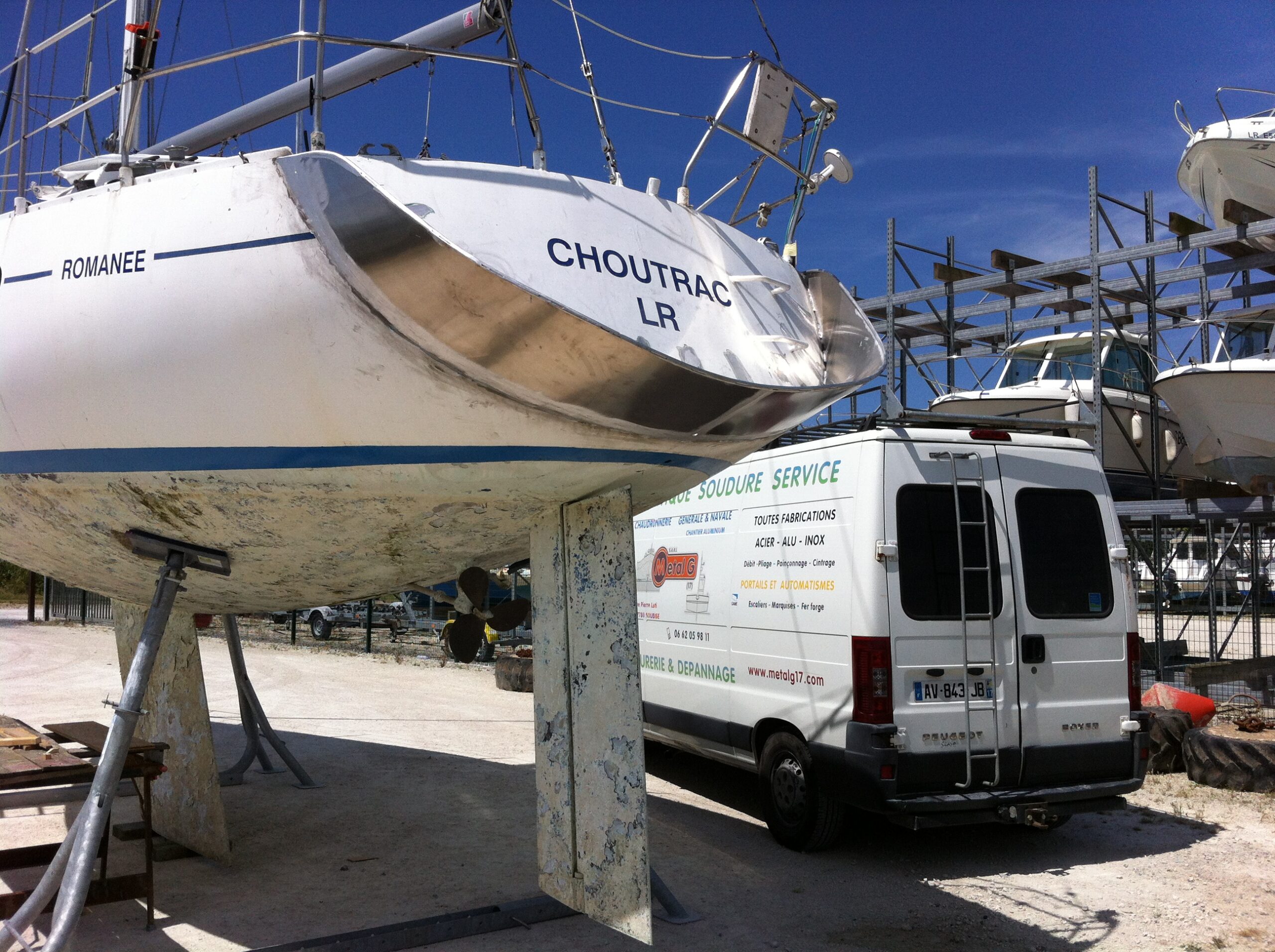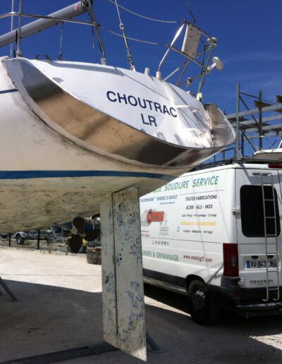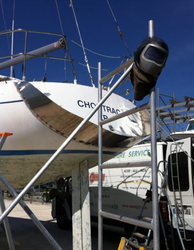 « J’avais besoin de faire réaliser des travaux de soudure sur mon voilier avant de prendre la mer pour un long voyage: pose de supports divers, pose de patins d’échouage et fabrication d’une protection d’hélice.
