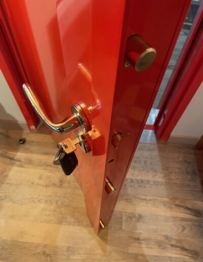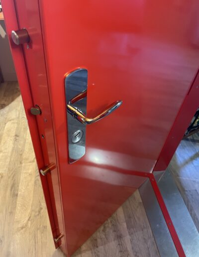 Cornières anti-pince, paumelles anti-dégondage, pose de poignées blindées avec protecteurs de cylindres